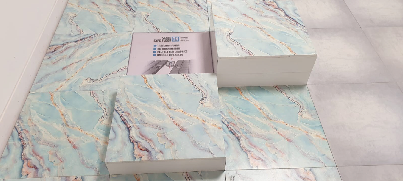 Stand-On Doppelboden ist ein nachhaltiges und praktisches Produkt, das speziell für die Anforderungen der modernen Messe- und Eventindustrie entwickelt wurde. Bei der Entwicklung dieses Produkts haben wir mehrere Faktoren berücksichtigt, u. a. die Notwendigkeit eines erhöhten Ausstellungsbodens, der klein und leicht zu transportieren ist sowie einfach, mühelos und ohne Einsatz von Werkzeugen auch von einer Person schnell aufgebaut werden kann. Die Grundplatten sind aus ABS Kunststoff und die Abdeckplatten aus Polycarbonat produziert und sind feuerbeständig.